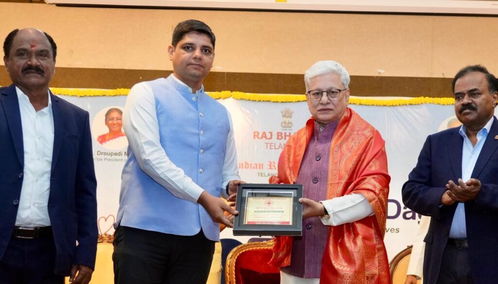 హైదరాబాదులోని రాజ్ భవన్ లో రాష్ట్ర గవర్నర్ & ప్రెసిడెంట్ ఇండియన్ రెడ్ క్రాస్ సొసైటీ తెలంగాణ స్టేట్ చేతుల మీదుగా కామారెడ్డి జిల్లా కలెక్టర్ ఆశిష్ సాంగ్వాన్ ఎంతో ప్రతిష్టాత్మకమైన బెస్ట్ బ్లడ్ డోనర్ అవార్డు శనివారం అందుకున్నారు. తెలంగాణ రాష్ట్రంలో ఒక కామారెడ్డి జిల్లా కలెక్టర్ కు మాత్రమే ఈ అవార్డు రావడం గమనార్హం. గత సంవత్సరంనుండి ఇండియన్ రెడ్ క్రాస్ సొసైటీ జిల్లా అధ్యక్షులుగా చేసిన సేవలకు గాను ముఖ్యంగా జిల్లాలో ఎక్కువ సంఖ్యలో రక్తదాన శిబిరాలు ప్రభుత్వపరంగా నిర్వహించడం వలన ఈ ప్రత్యేక అవార్డు పొందడం జరిగింది. ప్రతి సోమవారం జిల్లా కలెక్టర్ ఆధ్వర్యంలో ప్రజావాణిలో జిల్లా రెడ్ క్రాస్ జిల్లా చైర్మన్ ఎం రాజన్నతో కలిసి జిల్లా అధికారులు అందరితో రక్తదాన విషయంలో సమీక్ష జరిపేవారు. ప్రతి జిల్లా అధికారులు వారి సిబ్బంది తప్పక రక్తదానం చేసి ప్రాణాలను కాపాడాలని మోటివేట్ చేయడం మూలంగా ప్రతి నెల రెండు ప్రభుత్వ శాఖల అధికారులు సిబ్బంది విరివిగా రక్తదానం చేసేవారు. ఇలా సేకరించిన రక్త యూనిట్లను జిల్లాలోని పేద ప్రజల ఆరోగ్య అవసరాల కొరకు వినియోగించేవారు. అవార్డును స్వీకరించిన అనంతరం జిల్లా కలెక్టర్ మాట్లాడుతూ జిల్లా ప్రజల ఆరోగ్య అవసరాల దృష్ట్యా విరివిగా రక్తదాన శిబిరాలు నిర్వహించి రక్తాన్ని సేకరించి ప్రజల ఆరోగ్య అవసరాల నిమిత్తం అందించినందుకు చేసిన కృషికిగాను గవర్నర్ అవార్డు రావడం గర్వకారణమని, జిల్లా కలెక్టర్ గా మరియు ఇండియన్ రెడ్ క్రాస్ సొసైటీ జిల్లా అధ్యక్షులుగా ఈ అవార్డు రావడం చాలా సంతోషంగా ఉందని, రక్తాన్ని స్వీకరించడంలో తనతో పాటు కృషిచేసిన ఇండియన్ రెడ్ క్రాస్ సొసైటీ జిల్లా చైర్మన్ రాజన్న, వైస్ చైర్మన్ నాగరాజు గౌడ్, స్టేట్ ఎంసీ మెంబర్ సంజీవరెడ్డి, ఐఆర్సిఎస్ జిల్లా కార్యవర్గ సభ్యులు, ప్రజా ప్రతినిధులకు, జిల్లా అధికారులు, జిల్లా ప్రజలు అందరికీ శుభాకాంక్షలు తెలియజేశారు. ఇకముందు కూడా ఈ సేవలను కొనసాగిస్తామని జిల్లా కలెక్టర్ తెలియజేశారు.