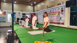 ప్రపంచ అంతర్జాతీయ దినోత్సవం సందర్భంగా కామారెడ్డి జిల్లా కేంద్రంలో ని యోగ భవన్లో ఏర్పాటుచేసిన యోగా శిబిరంలో కామారెడ్డి ఎమ్మెల్యే కాటిపల్లి వెంకటరమణారెడ్డి శనివారం పాల్గొన్నారు. యోగాసనాలు అందరితో కలిసి ప్రపంచ యోగ దినోత్సవం లో పాల్గొన్నారు. అనంతరం ఈ సందర్భంగా మాట్లాడుతూ. ప్రతి ఒక్కరూ యోగాసనాలు వేసి సంపూర్ణ ఆరోగ్యాన్ని కాపాడుకోవాలని ఆయన పిలుపునిచ్చారు. యోగాతోనే రాబోయే రోగాలను పరిగణలోకి తీసుకొని నిత్యం యోగా చేస్తే రోగాలు మటుమాయం అవుతాయని అన్నారు. యోగాను నిత్యం ఒక శరీరక వ్యాయామంగా తీసుకొని ప్రతి ఒక్కరు ఆరోగ్యాన్ని పదులపరుచుకోవాలని పిలుపునిచ్చారు. ఈ కార్యక్రమంలో కామారెడ్డి ప్రజలు పాల్గొన్నారు.