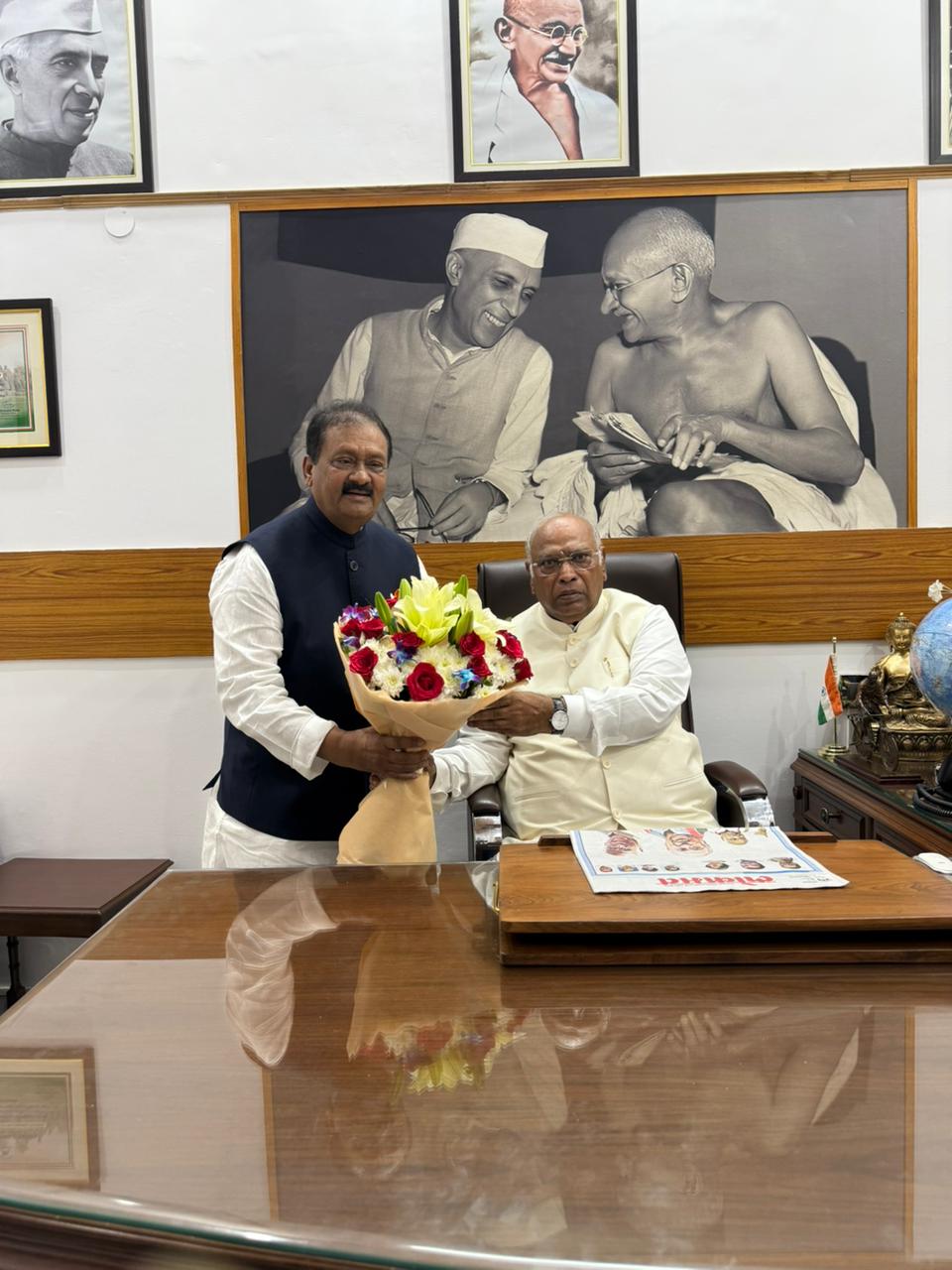 అఖిల భారత కాంగ్రెస్ కమిటీ అధ్యక్షులు, రాజ్యసభ ప్రతిపక్ష నాయకులు మల్లికార్జున్ ఖర్గే జన్మదినం సందర్భంగా తెలంగాణ రాష్ట్ర ప్రభుత్వ సలహాదారులు మహమ్మద్ అలీ షబ్బీర్ సోమవారం శుభాకాంక్షలు తెలిపారు. ఆయన నివాసంలో కలిసి ఆయనకు పుష్పగుచ్చం అందించి జన్మదినం సందర్భంగా ఆయురారోగ్యాలు గా ఉండాలని ఆకాంక్షిస్తూ శుభాకాంక్షలు తెలిపారు.