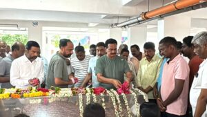 అంజన్న పార్థివ దేహానికి నివాళులర్పించిన గంప గోవర్ధన్. జిల్లా పార్టీ అధ్యక్షుడు ముజిబ్…