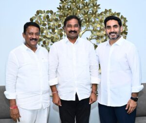 ఉండవల్లిలో, శ్రీశైలం నియోజకవర్గం ఎమ్మెల్యే బుడ్డా రాజశేఖర్ రెడ్డిరాష్ట్ర విద్యా, ఐటీ, హెచ్.ఆర్.డి మరియు ఆర్.టి.జి శాఖల మంత్రి నారా లోకేష్ ని అమరావతి ఉండవల్లి లోని వారి స్వగృహం నందు శుక్రవారం ఉదయం శ్రీశైలం ఎమ్మెల్యే బుడ్డా రాజశేఖర రెడ్డి మర్యాదపూర్వకంగా భేటీ అయ్యారు.