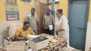 ఆదివారం సాయంత్రం గజ్వేల్ మండలం లోని అహ్మదీపూర్ గ్రామంలో గల ప్రాథమిక ఆరోగ్య కేంద్రాన్ని జిల్లా కలెక్టర్ కె. హైమావతి ఆకస్మికంగా సందర్శించి రోగులకు అందించే వైద్య సేవలను క్షేత్రస్థాయిలో పరిశీలించారు. అటెండెన్స్ రిజిస్టర్, ఓ పి రిజిస్టర్, ఫార్మా రిజిస్టర్ అన్ని వెరిఫై చేశారు. ఓపి కౌంట్, ఫార్మా కౌంట్, మెడికల్ ఆఫీసర్ కౌంట్ మ్యాచ్ కావడం లేదని అసహనం వ్యక్తం చేస్తూ రిజిస్టర్ రాయడం లో కొన్ని సూచనలు చేశారు. ఆసుపత్రికి వచ్చే రోగులకు మెరుగైన వైద్యం అందించాలని మెడికల్ ఆఫీసర్ తెలిపారు. సీజనల్ వ్యాధులు సంబంధించి ఎల్లప్పుడూ అప్రమత్తంగా ఉండాలని ఆదేశించారు.