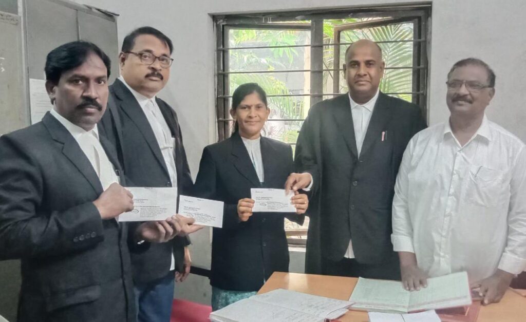 అడ్వకేట్స్ వృత్తిలో కొనసాగుతున్న వారికి హెల్త్ కార్డులు అందజేత కామారెడ్డి జిల్లా బార్ అసోసియేషన్ జిల్లా అధ్యక్షులు నంద రమేష్ చేతుల మీదుగా జిల్లా కోర్టులో పనిచేస్తున్న అడ్వకేట్స్ జి పి శ్యాంగోపాల్ రావ్, లతారెడ్డి, స్టీవెన్ రాజ్ లకు బుధవారం రోజున హెల్త్ కార్డులను అందజేయడం జరిగింది.హెల్త్ కార్డుల ద్వారా ప్రతి ఒక్కరికి ప్రమాదవశాత్తు అత్యవసర సమయంలో ఎంతో ఉపయోగపడతాయని బార్ అసోసియేషన్ జిల్లా అధ్యక్షులు నందా రమేష్ అన్నారు. హెల్త్ కార్డులు తీసుకొని వారు ఎవరైనా ఉంటే వెంటనే మమ్మల్ని సంప్రదించి హెల్త్ కార్డులు తీసుకోవాలని కోరారు. హెల్త్ కార్డులు మన కుటుంబానికి మనకి అత్యవసర సమయంలో ప్రమాదవశాత్తు జరిగినప్పుడు హెల్త్ కార్డులు ఎంతో ఉపయోగపడతాయని సూచించారు.