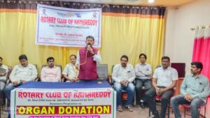 రోటరీ క్లబ్ అసిస్టెంట్ గవర్నర్ డాక్టర్ జైపాల్ రెడ్డి మాట్లాడుతూ రోటరీ క్లబ్ ఆధ్వర్యంలో దేశవ్యాప్తంగా అవయవ దానం పైన అవగాహన కార్యక్రమాలను విస్తృతంగా నిర్వహించడం జరుగుతుందని దానిలో భాగంగానే కామారెడ్డి జిల్లా కేంద్రంలో నిర్వహించడం జరిగిందని అన్నారు.