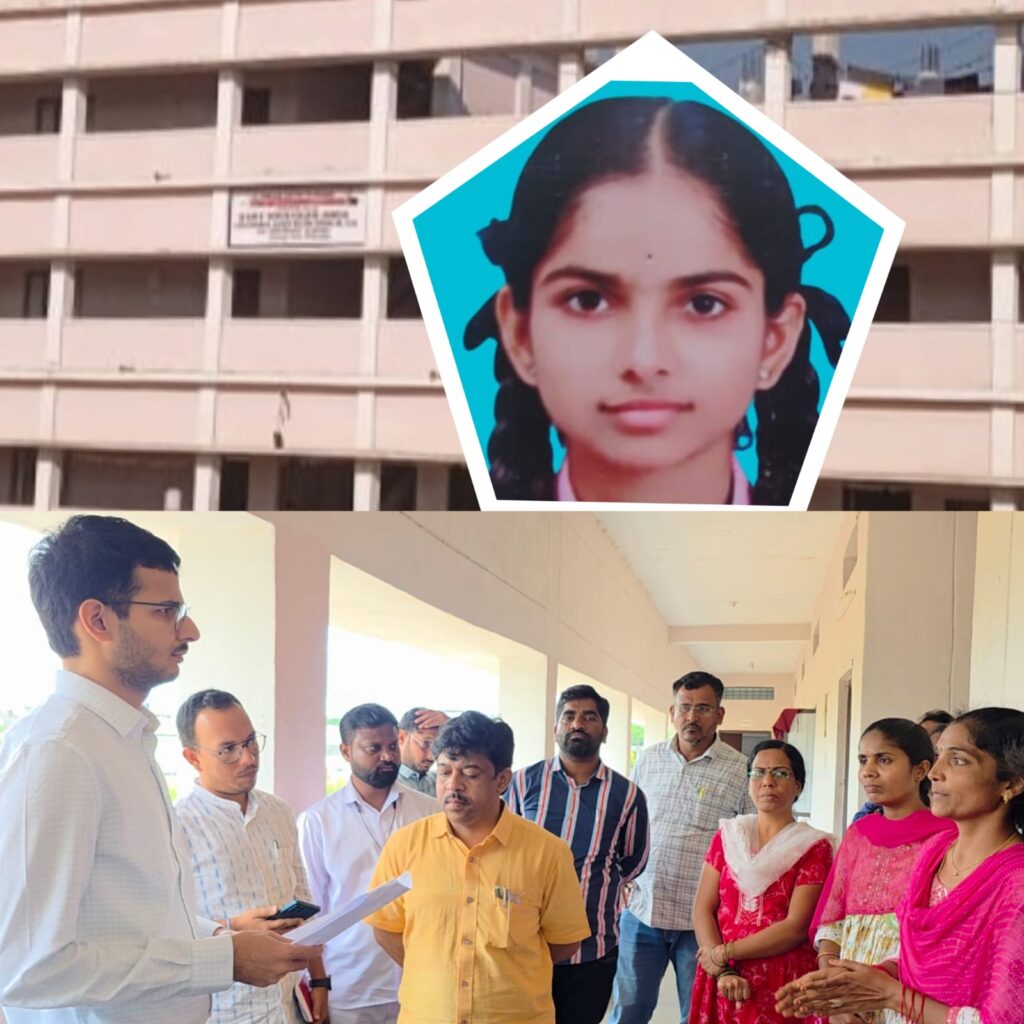 నిజామాబాద్ జిల్లా ప్రతినిధి మనోహర్ ఆగస్టు 14: (అఖండ భూమి న్యూస్) ఆర్మూర్, పట్టణ కేంద్రంలోని కస్తూర్బా గాంధీ (కేజీబీవీ) కళాశాలలో ఇంటర్ ఎంపీసీ మొదటి సంవత్సరం చదువుతున్న కావేరి (16) వేకువ జామున మూడున్నర ప్రాంతంలో వాష్ రూమ్ కు వెళ్లి వస్తుండగా కోతులు వెంట పడడంతో భయపడి ఫస్ట్ ఫ్లోర్ నుండి కిందికి దూకడంతో తలకు తీవ్ర గాయాలు కావడంతో నిజామాబాద్ జిల్లా కేంద్రంలోని ప్రైవేటు ఆసుపత్రిలో చేర్పించారు. అక్కడ చికిత్స పొందుతూ బుధవారం కావేరి మృతి చెందింది. కోతులు వెంటపడడంతో భయపడి రక్షించుకోవడానికి కావేరి ఫస్ట్ ఫ్లోర్ నుండి దూకడంతో తలకు తీవ్ర గాయాలై మృతి చెందినట్లు అన్ని పత్రికల్లో వచ్చింది. ఆర్మూర్ సబ్ కలెక్టర్ అభిగ్యాన్ మాలవియా, తాసిల్దార్ సత్యనారాయణ, మున్సిపల్ కమిషనర్ రాజులతో కలిసి గురువారం కేజీబీవీ విద్యార్థిని కావేరి మృతి పై విద్యార్థులను, కళాశాల ప్రిన్సిపల్ గంగామణి, సిబ్బందికి జరిగిన సంఘటన వివరాలను అడిగి తెలుసుకున్నారు. అనంతరం ఆయన మాట్లాడుతూ పత్రికల్లో వచ్చిన కథనాలకు, విద్యార్థులు చెప్పిన దానికి, జరిగిన సంఘటనకు పొంతన లేకుండా ఉందని అన్నారు. పోలీసులతో మాట్లాడి విచారణ చేయిస్తామన్నారు.