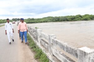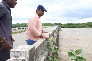 తాకిడి ఉంటుందని ఆర్ అండ్ బి అధికారులు కలెక్టర్కు వివరించారు. జిల్లా కలెక్టర్ రాహుల్ రాజ్ మాట్లాడుతూ వర్షాలు వరదల వలన రైతులకు గాని సామాన్య ప్రజలకు గాని ఎటువంటి ఇబ్బంది కలగకుండా చూడాలని నీటిమట్టాన్ని అంచనా వేస్తూ దానికి అనుగుణంగా చర్యలు చేపట్టాలని సూచించారు. ఈ కార్యక్రమంలో సంబంధిత అధికారులు తదితరులు పాల్గొన్నారు.