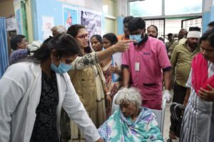 కామారెడ్డి పట్టణంలోని రైల్వే స్టేషన్ లో గత పది రోజుల నుండి వానలో తడుచుకుంటూ ఉంటున్న వృద్ధురాలికి అండగా ఆపన్న హస్తం గా ఉంటామని కామారెడ్డి తాజా మాజీ మున్సిపల్ చైర్మన్ గడ్డం ఇందుప్రియ చంద్రశేఖర్ రెడ్డి స్పందించారు. సోమవారం అనాధగా కామారెడ్డి రైల్వే స్టేషన్లో ఉంటున్న విషయాన్ని తెలుసుకున్నారు. విషయం గమనించి వెంటనే విషయం తెలుసుకొని రైల్వే స్టేషన్ కి బయలు దేరారు. తాజా మాజీ మున్సిపల్ చైర్ పర్సన్ గడ్డం ఇందుప్రియ ఆమె పూర్తి వివరాలు తెలుసుకొని, కామారెడ్డి జిల్లా శిశు సంక్షేమ అధికారికి కాల్ చేసి మాట్లాడారు. అలాగే, వృద్దురాలు ఆరోగ్యం పట్ల, కామారెడ్డి ప్రభుత్వ ఆసుపత్రి సూపర్డెంట్ తో మాట్లాడి స్వయంగా ఆటోలు తీసుకుని వెళ్లి హాస్పిటల్ లో చికిత్స నిమిత్తం తీసుకెళ్లారు. ఆసుపత్రిలో చికిత్స అయ్యే వరకు అక్కడ ఉండి ఆసుపత్రి సిబ్బందితో బాగా చూసుకోవాలని కోరారు, ఆరోగ్యం గురించి మాకు సంప్రదించాలాని అవసరం అయినా సహాయం చేస్తామని హామీ ఇచ్చారు. ఈ సందర్బంగా వృద్దురాలికి దుస్తులు, ఆహారం అందించారు మాజీ చైర్మన్ వెంట ఎస్సై వినయ్ కుమార్, బండారి శ్రీకాంత్, యూత్ సభ్యులు నర్సోలా మహేష్, శశిలు ఉన్నారు.