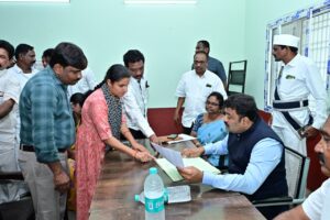 జిల్లాలో యూరియా పంపిణీ లో అక్రమాలు జరగకూడదని జిల్లా కలెక్టర్ పి.రంజిత్ బాషా మండల వ్యవసాయ అధికారులను ఆదేశించారు.. గురువారం వెల్దుర్తి మండలం బొమ్మిరెడ్డిపల్లి రైతు సేవా కేంద్రం లో రైతులకు యూరియా పంపిణీ పై జిల్లా కలెక్టర్ తనిఖీ చేశారు. ఈ సందర్భంగా జిల్లా కలెక్టర్ యూరియా పంపిణీ రికార్డులను పరిశీలించారు.. గ్రామానికి ఇప్పటి వరకు ఎంత యూరియా వచ్చింది, రైతులకు ఎలా పంపిణీ చేశారు అని రిజిస్టర్లను క్షుణ్ణంగా పరిశీలించారు..ఆన్లైన్ వివరాలతో పాటు ఆఫ్లైన్ లో ఏ రైతుకి ఎంత ఇచ్చారు అని వివరాలను రిజిస్టర్ లో ఎంట్రీ చేయడం పట్ల కలెక్టర్ సంతృప్తి వ్యక్తం చేశారు…..ఇంకా ఎంత మేరకు యూరియా అవసరం ఉందని కలెక్టర్ మండల వ్యవసాయ అధికారిని ఆరా తీశారు .. 300 బ్యాగ్ ల యూరియా ఈ గ్రామానికి అవసరం ఉందని మండల వ్యవసాయ అధికారి కలెక్టర్ దృష్టికి తీసుకురాగా.. యూరియా వచ్చిన వెంటనే ఈ గ్రామానికి 300 బ్యాగ్ లు పంపించాలని కలెక్టర్ జిల్లా వ్యవసాయ అధికారిని ఆదేశించారు… యూరియా పక్కదారి పట్టకుండా రైతులకు సజావుగా పంపిణీ అయ్యేలా చర్యలు తీసుకోవాలని కలెక్టర్ సూచించారు..