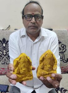 కామారెడ్డి జిల్లా ప్రతినిధి; ఆగస్టు 25,(అఖండ భూమి ప్రతినిధి) : కామారెడ్డి జిల్లా దోమకొండ ప్రభుత్వ జూనియర్ కళాశాల కు చెందిన కవి లెక్చరర్ ఉమశేషారావు గోమయ అవుపేడతో తయారు చేసిన గణపతి తో మనం పూజ చేస్తే అనారోగ్యం తొలిగి,సర్వ పీడనలు తొలిగి,విద్యార్థులకు అఖండ విద్యా సిద్ధిస్తుంది. ,సంతానం లేనివారికి సంతానం కలుగుతుంది అని,గోమాత లో ముక్కోటి దేవతలు ఇమిడి ఉన్నారు. చవితి రోజు అవుపేడతో తయారు చేసుకొని,మనసులో సంకల్పం చెప్పుకొని నమో వక్రతుండాయ అంటూ 108 ప ర్యాయములు కానీ 1008 జపం చేసుకొని, గంధపుష్పములు సమర్పిస్తే చాల పుణ్యప్రదం అని శాస్త్రం చెప్పుతుంది..ఇది చెట్టు కింద పెట్టిన కంపోస్టు ఎరువుగా మొక్క ఎదుగుదలకు, తోడ్పడితుంది.నీళ్లలో నిమజ్జనం చేసిన సులభంగా కరిగి నీటిలో ఉన్న బ్యాక్టీరియా నశిస్తుంది.ఈ గోమయ గణపతి తయారు చేసుకొని భాద్రపద చవితి రోజున గాని,ప్రతి చవితి,సంకష్ట చతుర్థి రోజు నిర్వహించుకోవచ్చు. అర్ధమండలం 21 రోజు ఏ రోజు కు ఆ రోజు తయారు చేసుకోవాలి.దీని వలన సమస్త కష్టములు తొలిగి సుఖ సంపదలు పొందగలరు. గోమయ గణపతి తో మరింత శ్రేష్టం అని తాను దానినె వినాయక చవితి రోజు పూజిస్తున్నాను అని కవి,లెక్చరర్ ఉమాశేషారావు చెప్పారు.