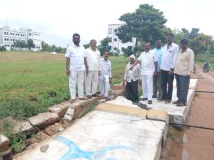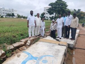 కూలిపోయిన ప్రహరీని పరిశీలించిన దోమకొండ కాంగ్రెస్ నాయకులు…