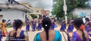 కామారెడ్డి జిల్లా ప్రతినిధి; సెప్టెంబర్ 5 (అఖండ భూమి న్యూస్) కామారెడ్డి జిల్లా బీబీపేట మండల కేంద్రంలో వినాయక చవితి నవరాత్రుల సందర్భంగా శుక్రవారం చివరి రోజు శ్రీ సిద్ధి బుద్ధి వినాయకుని ఊరేగింపు శోభయాత్ర శుక్రవారం ఘనంగా నిర్వహించారు. ఆర్యవైశ్య మహిళలు కోలాటాల నడుమ, డప్పు వాయిద్యాలతో అందరినీ ఆకట్టుకున్నారు. మహిళలు యువతులు, యువకులు ఎంతో ఉత్సాహంతో చిందులు వేస్తూ భక్తిశ్రద్ధలతో వినాయక శోభాయాత్రను ఘనంగా ప్రారంభించారు. ఈ కార్యక్రమంలో శ్రీ వాసవి క్లబ్ ప్రతినిధులతో పాటు ఆర్యవైశ్య ప్రతినిధులు, సభ్యులు గ్రామస్తులు పాల్గొన్నారు.