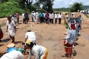 ఈ సందర్భంగా ఇరిగేషన్ సిఇ శ్రీనివాస్ తో ఫోన్లో మాట్లాడి అధిక వర్షాలతో తెగిపోయిన ఊరకుంట చెరువు, సోమ్లా నాయక్ చెరువు, కొండెంగల చెరువు, మల్లారం పెద్ద చెరువులతో పాటు జిల్లా వ్యాప్తంగా దెబ్బ తిన్న అన్ని చెరువుల మరమత్తు పనులను యుద్ధ ప్రాతిపదికన చేపట్టి పూర్తి చేయాలని, ప్రతిరోజు ఇరిగేషన్ అధికారులు క్షేత్రస్థాయిలో పర్యటించి పర్యవేక్షించాలని ఆదేశించారు.