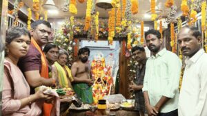 రావులపాలెం. అమ్మవారికి ప్రత్యేక పూజలు నిర్వహించి దర్శించుకున్న డిఎస్పీ మురళీ మోహన్ మండలం పరిధిలోని ఈతకోట గ్రామంలో జాతీయ రహదారి చెంతనే కొత్త సెంటర్ నందు కొలువై ఉన్న శ్రీ కనకదుర్గమ్మవారిని బుధవారం నాడు కొత్తపేట డిఎస్పీ సుంకర మురళీ మోహన్ దర్శించుకున్నారు దసరా పదోవ రోజున శ్రీ మహిషాసుర మర్ధిని దేవిగా అమ్మవారు భక్తులకు దర్శనమిచ్చారు దేవి నవరాత్రుల సందర్భంగా అమ్మవారికి కుటుంబ సమేతంగా ఆయన ప్రత్యేక పూజలు నిర్వహించి దర్శించుకున్నారు వీరికి ఆలయ కమిటీ చైర్మన్ వెలుగట్ల రామకృష్ణ.కమిటీ సభ్యులు ఆలయ మర్యాదలతో ఘన స్వాగతం పలికారు ఆయన కుటుంబ సభ్యుల గోత్ర నామాలతో ఆలయ అర్చకులు ఖండవిల్లి నారాయణ చార్యులు (నాని) ప్రత్యేక పూజలు నిర్వహించి వారికి ఆశీర్వచనాలు అందజేశారు అనంతరం డిఎస్పీ మురళీ మోహన్ మాట్లాడుతూ అనుకున్న పనుల నెరవేర్చే దేవతగా ఈతకోట శ్రీ కనకదుర్గమ్మఅమ్మవారు ప్రసిద్ధి చెందారన్నారు అమ్మవార్ల ఆశీస్సులు ప్రజలందరికి ఉండాలని కుటుంబ సభ్యులతో కలిసి దుర్గమ్మను దర్శించుకున్నామన్నారు ఈ సందర్భంగా బీజేపీ కొత్తపేట అసెంబ్లీ కో కన్వీనర్ గండ్రోతు వీరగోవిందరావు పలువురు గ్రామ పెద్దలు ఆయన్ని మర్యాద పూర్వకంగా కలిసి స్వాగతం పలికారు దర్శనానికి విచ్చేసిన ఆయన్ని స్వాగతం పలికిన వారిలో ఆలయ కమిటీ చైర్మన్ తో పాటుగా కమిటీ సభ్యులు ఈరి నాగరాజు. జనిపిరెడ్డి రామకృష్ణ (బుల్లికిట్టయ్య). గండ్రోతు గౌతమ్.మానే అన్నవరం. మోటూరి సత్తిపండు.మట్టా సత్తిబాబు.ప్రజా సేవకుడు. వివి వినాయక్ సేవా యూత్ సర్కిల్ అధ్యక్షులు గండ్రోతు దుర్గాసురేష్. తదితరులు ఉన్నారు