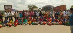 కామారెడ్డి మున్సిపల్ పరిధిలోని రెండో వార్డ్ రామేశ్వరపల్లి డబల్ బెడ్ రూమ్ కాలనీ వాసులకు గత నెల రోజులుగా త్రాగు నీరు రావడం లేదని డబల్ బెడ్ రూమ్ వాసులు సిరిసిల్ల బైపాస్ వద్ద ధర్నా శనివారం నిర్వహించారు. మున్సిపల్ డిఈ , ఎఈ రావాలని డబల్ బెడ్రూం కాలనీవాసులు పెద్ద ఎత్తున మహిళలు ధర్నా నిర్వహించారు. విషయం తెలుసుకున్న దేవునిపల్లి ఎస్సై రంజిత్ పోలీసులు అక్కడ చేరుకొని డిఈ, ఏఈలను రప్పిస్తానని చెప్పి హామీ ఇవ్వడంతో ధర్నా విరమింపజేశారు. డిఈ హనుమంతరావుకు కాలనీవాసులు వినతిపత్రం అందజేశారు. ఈ సందర్భంగా డిఈ హనుమంతరావు మాట్లాడుతూ. వారం రోజులలో నీటి సమస్యను పరిష్కరిస్తానని , బోరులో మోటర్ పెట్టిపించి నీటి సమస్య పరిష్కరిస్తామని హామీ ఇవ్వడం జరిగింది. ఈ కార్యక్రమంలో డబల్ బెడ్ రూమ్ కాలనీవాసులు మహిళలు పెద్ద సంఖ్యలో పాల్గొన్నారు.