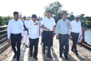 బిబిపేట్ నుండి బయలుదేరి కామారెడ్డి జిల్లా కేంద్రానికి చేరుకొని జిఆర్ కాలనీ వద్ద దెబ్బతిన్న బ్రిడ్జిని, అధిక వర్షాలతో దెబ్బతిన్న కామారెడ్డి ఫిల్టర్ బెడ్ పంప్ హౌస్ క్యాజ్ వే రోడ్డు ను పరిశీలించారు.