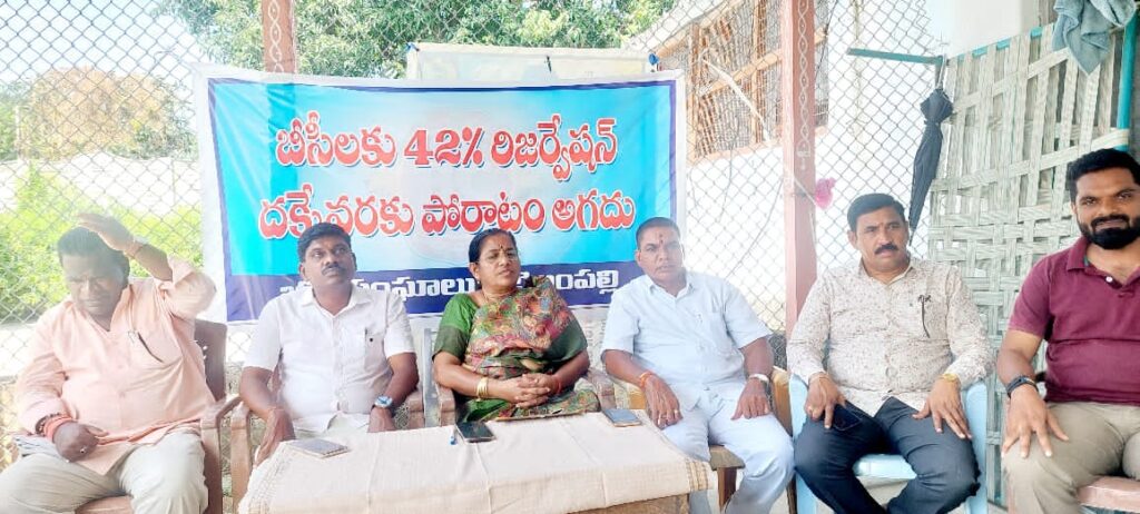 ఈ సందర్బంగా నాయకులు మాట్లాడుతూ..స్థానిక సంస్థల్లో అమల్లో ఉన్న 42 శాతం రిజర్వేషన్ను ప్రభుత్వం కొనసాగించాలి అని డిమాండ్ చేశారు.