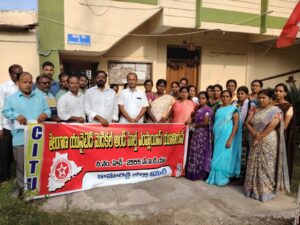 ఈ సందర్భంగా రాష్ట్ర గౌరవ అధ్యక్షులు భూపాల్ మాట్లాడుతూ మెడికల్ డిపార్ట్మెంట్లోని కాంట్రాక్టర్ సోర్సింగ్ ఎంప్లాయిస్ అందరికి వేతనాలు పెంచాలని డిమాండ్ చేశారు. రాష్ట్రంలోని ఏఎన్ఎంల పని భారం తగ్గించాలని,1930 ఏ ఎన్ ఎం పోస్టులు , 2300 నర్సింగ్ ఆఫీసర్స్, 1284 ఎల్ టి, 735 ఫార్మసిస్ట్ పోస్టులు వెంటనే భర్తీ చేయాలని డిమాండ్ చేశారు. ప్రభుత్వం కాంట్రాక్టు ఉద్యోగుల క్రమబద్ధీకరణ కోసం చర్యలు చేపట్టాలని డిమాండ్ చేశారు. సమాన పనికి సమాన వేతనాలు చెల్లించాలని కోరారు. ఉద్యోగుల సమస్యలను పరిష్కరించడం లో ప్రభుత్వం విఫలమైందని విమర్శించారు. ఆరోగ్య శ్రీ మిత్రల వేతనాలు పెంచాలని డిమాండ్ చేశారు. 104 ఉద్యోగులందరికీ జీతాలు ఇవ్వాలని, స్వంతజిల్లాలో నియమించాలని కోరారు. కామారెడ్డి జిల్లా లోని ఔట్ సోర్సింగ్ ఏ ఎన్ ఏం , ఫార్మసిస్ట్ లను కాంట్రాక్టు పద్ధతిలో మార్చాలని కోరారు. గవర్నమెంట జనరల్ హాస్పిటల్ లో 8 మంది డిఈఓ లను తొలగించడం అన్యాయం అన్నారు వెంటనే విధుల్లోకి తీసుకోవాలని డిమాండ్ చేస్తూ ఉద్యమం చేస్తామన్నారు. వచ్చే నెల నవంబర్ 9 న రాష్ట్ర మహాసభ సంగారెడ్డిలో ఉంటుందని ఉద్యోగులందరూ జయప్రదం చేయాలని పిలుపునిచ్చారు. ఈ కార్యక్రమం లో సిఐటియు నాయకులు కొల్లాపురం బాబు, జోత్స్న,సావిత్రి,అల్లాఉద్దీన్ ,స్వామి ,గంగాధర్,అన్నపూర్ణ, ,కవిత ,సుజాత, కళ్యాణి ,అమీనుద్దీన్, వీరేష్, ప్రభాకర్, దేవలక్ష్మి ,వాణి, సుశీల ,శోభ ,సంగీత, మాధవి ,రాజమణి ,రాధిక సునీత, బాలమణి, ప్రవీణ శ్రీలత, ఇమ్రాన్ ,రాథోడ్ నాయక్ శ్రీనివాస్, మల్లికార్జున్ ,శ్రీనివాస్ డిఇఓ తదితరులు పాల్గొన్నారు.