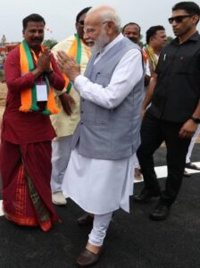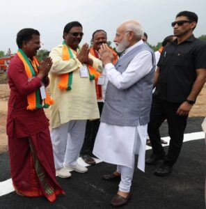 శ్రీశైలంప్రధానమంత్రి నరేంద్ర మోది,శ్రీశైలం శ్రీ భ్రమరాంబ మమల్లికార్జున స్వామి అమ్మవార్ల దర్శనార్థం వచ్చిన శుభ సందర్భంగా దేశం సుభిక్షంగా ఉండాలని దోర్నాల టు శ్రీశైలం టు వటర్లపల్లి రోడ్లు విస్తీర్ణం చేస్తారని మరియు అటవీ శాఖ చెక్పోస్ట్ టైం తగ్గింపునకుఅనుకు అవకాశం తీసుకుంటారని ఆయన శ్రీశైలం సందర్శించిన శుభ సందర్భంగా,ఇవే మా శుభాకాంక్షలు అంటూ ప్రధానమంత్రి మోడీకి అభివాదం తెలుపుతున్న అంతిరెడ్డి అరవింద రెడ్డి బనగానపల్లి బిజెపి కన్వీనర్ బి వి సుబ్బారెడ్డి ప్రధానమంత్రి నరేంద్ర మోదీ జీ కి శ్రీశైలం వచ్చిన ప్రధాని మోదీ ఎదురెదురుగా తారాసపడి ఆనందదాయకంగా ఆయనకు అభివాదం తెలిపి ఆయనతో ముచ్చటించడం జరిగింది ఇదేవిధంగా దేశం సుభిక్షంగా ఉండే విధంగా శ్రీ నరేంద్ర మోధీజీ కోరుకుంటున్నారని శ్రీ భ్రమరాంబ మల్లికార్జున స్వామి అమ్మవార్ల దర్శనార్థం వచ్చినందుకు నాకు ఎంతో సంతోషంగా ఉంది అని స్వామి అమ్మవార్ల కృప కటాక్షాలు నాకు ఉండే విధంగా చూడాలని శ్రీశైలం నేను వచ్చిన సందర్భంగా నాకు ఎంతో తృప్తిగా ఉంది అని శ్రీ నరేంద్ర మోధీ జీ శ్రీశైలం క్షేత్రాన్ని తిరుమల తిరుపతి తరహాలో అభివృద్ధిపరిచే విధంగా చేస్తాడని మాకు నమ్మకం కలిగిందని దేశంలో ఇలాంటి ప్రధాని గా వేరొకరున్న కష్టాలుగా ఉండేవని మోధీజీ అంటేనే దేశాన్ని అభివృద్ధిలో ముందస్తులో నడిపించేందుకుదేశ ప్రజలంతా సుఖ సంతోషాలతో ఉండే విధంగా శ్రీ భ్రమరాంబ మల్లికార్జున స్వామి అమ్మవార్లను దర్శించుకున్నారు అని శివ హోమ్ టెంపుల్ ట్రస్ట్ నిర్వాహకులుఅంతిరెడ్డి అరవింద్ రెడ్డి మరియు బనగానపల్లె బిజెపికన్వీనర్ బి వి సుబ్బారెడ్డి తెలిపారు