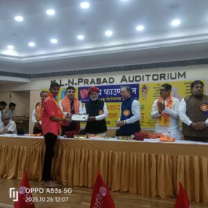 ఇంటర్మీడియట్ మొదటి సంవత్సరంలో తెలంగాణా సోషల్ వెల్ఫేర్ జూనియర్ కళాశాల షేక్ పేట్ సీవోఈ నుండి 99% మార్కులతో ఉత్తీర్ణులైన ప్రథమ్ పాండే, ఇంటర్మీడియట్లో 90% జీ పీ ఏ తో ఉత్తీర్ణులైన ఛవి శర్మలను కండువా కప్పి ప్రతిభా అవార్డులతో సత్కరించారు.ఈ కార్యక్రమంలో జోన్ 16 విప్ర్ ఫౌండేషన్ అధ్యక్షుడు హరికిషన్ ఓజా,మంత్రి రామ్దేవ్ నాగ్లా,కోఆర్డినేటర్ ఆనంద్ శర్మ ఇతర సభ్యులు పాల్గొన్నారు…