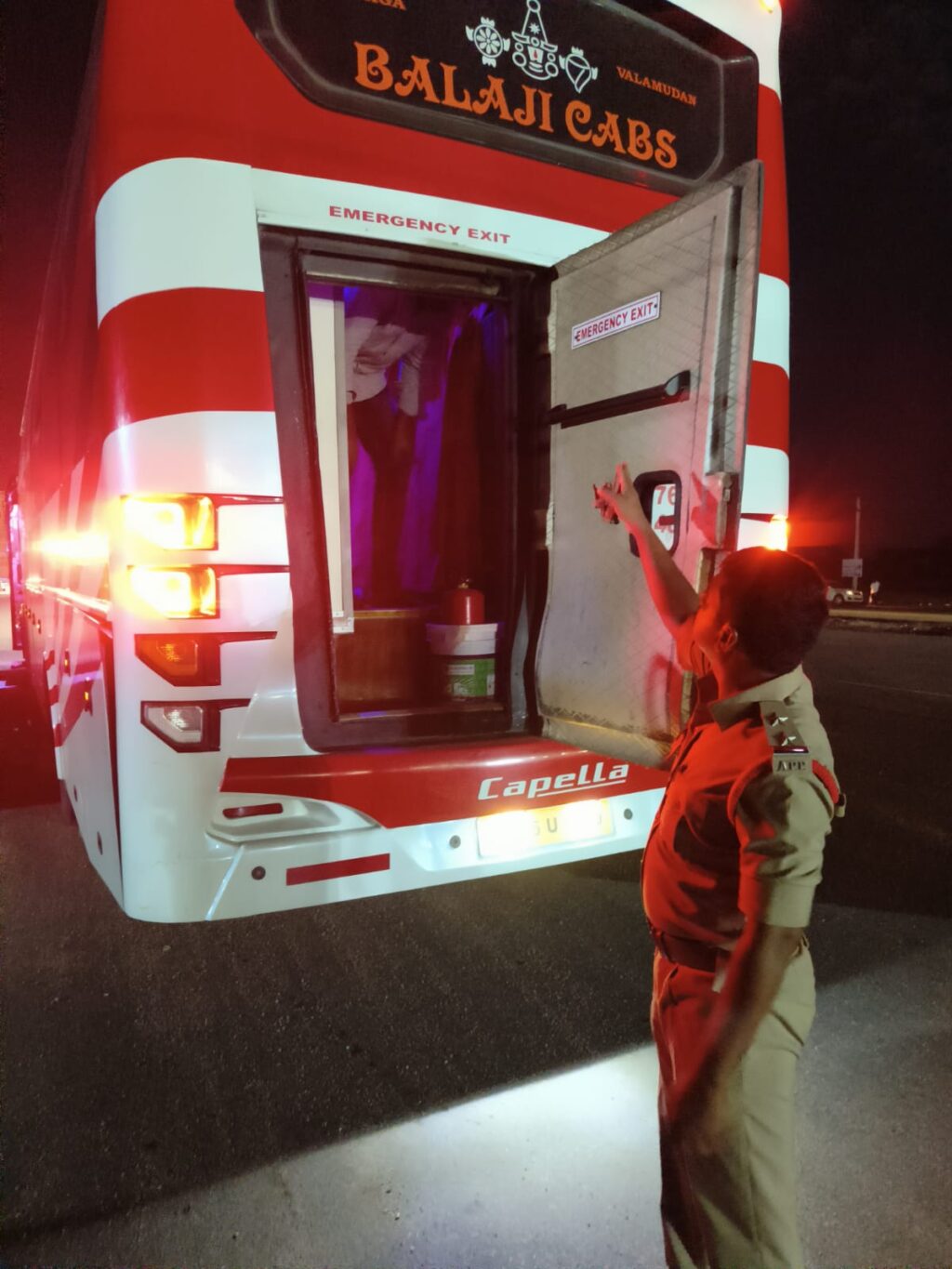 తనిఖీలో భాగంగా డ్రైవర్లు మరియు ప్యాసింజర్ల భద్రతా ప్రమాణాలను పరిశీలించారు. ఎగ్జిట్ డోర్లు, లగేజ్ క్యారియర్లలో అనుమానాస్పద వస్తువులు లేదా పేలుడు పదార్థాలు ఉన్నాయా అనే దానిపై విపులంగా పరిశీలన జరిపారు. ఫైర్ను నియంత్రించడానికి అవసరమైన పరికరాలు సరిగా ఉన్నాయా లేదా అని చెక్ చేశారు.