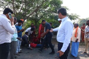 ప్రమాదంలో గాయపడిన వ్యక్తిని వాహనంలో ఆసుపత్రికి తరలించిన జిల్లా కలెక్టర్ ఆశిష్ సాంగ్వాన్…
