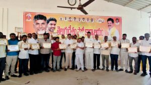 తెలుగుదేశం పార్టీ ఎంతో ప్రతిష్టాత్మకంగా చేపట్టిన సుపరిపాలనలో తొలి అడుగు 4.1 కార్యక్రమంలో భాగంగా కూటమి ప్రభుత్వం చేస్తున్న అభివృద్ధి, సంక్షేమ పథకాల గురించి ప్రజలకు వివరించిన ఉత్తమ కార్యకర్తలందరికీ తెలుగుదేశం పార్టీ జాతీయ ప్రధాన కార్యదర్శి నారా లోకేష్, హృదయపూర్వకంగా ప్రశంసిస్తూ అభినందిస్తూ వారి సేవలకు గుర్తింపుగా యర్రగొండపాలెం పట్టణంలోనీ తెలుగుదేశం పార్టీ కార్యాలయంలో తెలుగుదేశం పార్టీ ఇన్ చార్జ్ గూడూరి ఎరిక్షన్ బాబు కార్యకర్తలకు ఉత్తమ ప్రశంసా పత్రాలను అందజేశారు.ఈ కార్యక్రమంలో టీడీపీ మండల కన్వీనర్లు పోట్ల గోవిందు,మేకల వలరాజు,మెట్టు శ్రీనివాస్ రెడ్డి, షేక్ మాబు,నాయకులు చేకూరి సుబ్బారావు,పంచాయతీ కార్యదర్శి రామ సుబ్బయ్య,నాయకులు పెరుమాళ్ళ మల్లికార్జున రావు, శనగ నారాయణరెడ్డి,కేసనపల్లి మల్లికార్జున,కందుల నారాయణరెడ్డి,బివి సుబ్బారెడ్డి,మంత్రు నాయక్,కాకర్ల కోటయ్య,మహేష్ నాయుడు తదితరులు పాల్గొన్నారు.