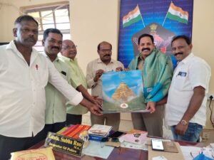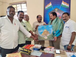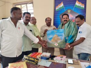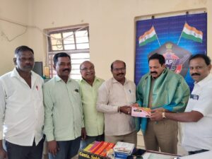 లవాతో సత్కరించి, శ్రీశైల దేవస్థానం క్యాలెండరు అందజేశారు. ఈ కార్యక్రమంలో డాక్టర్ రెడ్డప్ప, AITUC (H64) జనరల్ సెక్రెటరీ, ఏఐవైఎఫ్ రాష్ట్ర నాయకులు లక్ష్మయ్య, TUCI జిల్లా అధ్యక్షుడు,ఆశీర్వాదం, రిపోర్టర్స్ విజయ్ రాయల్, రిపోర్టర్ అఖండ భూమి మల్లారెడ్డి,తదితరులు ఉన్నారు.