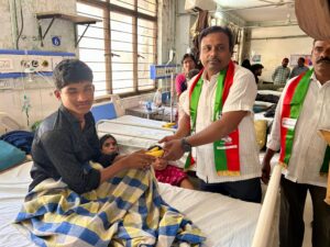ఈ సందర్భంగా ఆసుపత్రిలో చికిత్స పొందుతున్న రోగులకు పండ్లు పంపిణీ చేసి, వారి ఆరోగ్య పరిస్థితులను అడిగి తెలుసుకున్నారు. పేద ప్రజలకు అండగా నిలవడం, ప్రజాసేవే లక్ష్యంగా పనిచేయడం తీన్మార్ మల్లన్న ఆలోచనలకు ప్రతీక అని నాయకులు తెలిపారు.
