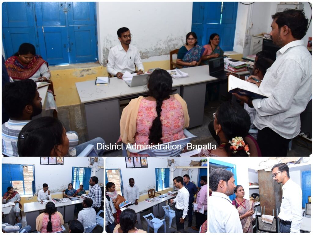 (రేపల్లె నియోజకవర్గ ఇంచార్జి: సిహెచ్ రాంబాబు. చెరుకుపల్లి, ఫిబ్రవరి 12, అఖండ భూమి న్యూస్) సచివాలయ సిబ్బంది రోజువారి బయోమెట్రిక్ హాజరు సమయానుకూలంగా లేకపోతే చర్యలు తప్పవని జిల్లా కలెక్టర్ డాక్టర్ వి .వినోద్ కుమార్ అన్నారు. గురువారం మండలంలోని ఆరంబాక సచివాలయాన్ని ఆకస్మికంగా తనిఖీ చేసిన ఆయన సిబ్బంది బయోమెట్రిక్ హాజరు సరిగా లేకపోవడాన్ని గుర్తించి సిబ్బందిని హెచ్చరించారు. ప్రభుత్వ నిర్దేశిత సమయానికి సిబ్బంది బయోమెట్రిక్ హాజరు విధిగా నమోదు కావాలని అలా సమయానికి నమోదు కాని పక్షంలో శాఖపరమైన చర్యలు తప్పవని ఆయన హెచ్చరించారు. అదేవిధంగా రేషన్ పంపిణీ, ప్రజా సానుకూలత, రెవెన్యూ సేవలు, రీ సర్వే ,మ్యుటేషన్ తదితర అంశాలను ఆయన సమీక్షించారు. ప్రజలకు ప్రభుత్వ సేవలు అందించడంలో పారదర్శకంగా ఉండాలని సేవలో ఆలస్యం చోటు చేసుకుంటే తక్షణమే దరఖాస్తుదారులు అధికారులు దృష్టికి తీసుకురావాలని ఆయన స్థానికులకు సూచన చేశారు. ప్రజల నుండి వచ్చిన అర్జీలను గడువులోగా పరిష్కరించాలని సిబ్బందిని ఆదేశించారు. కార్యక్రమంలో ఆర్డీవో రామలక్ష్మి, తాసిల్దార్ సిహెచ్ పద్మావతి, పంచాయతీ కార్యదర్శి పులి నాగ మల్లేశ్వరి, వివిధ శాఖల అధికారులు, సచివాలయ సిబ్బంది ,తదితరులు పాల్గొన్నారు.