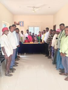 గ్రామస్తుల మధ్యలో సర్పంచ్ అరుట్ల కవిత అనిల్ కేక్ కట్ చేసి..