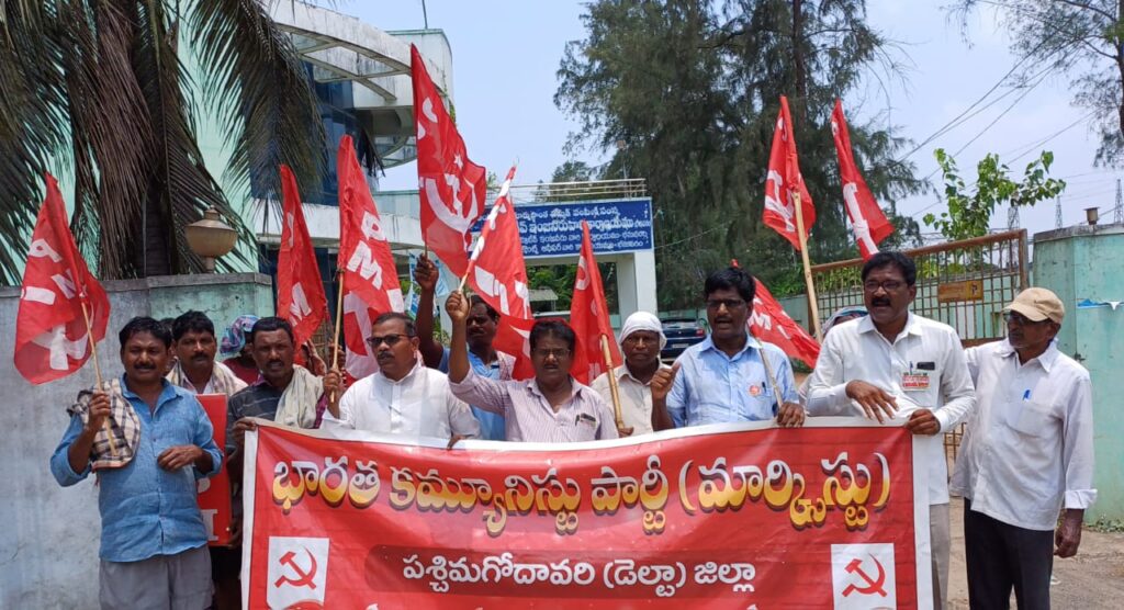 భీమవరం పట్టణంలో వేలాపాల లేని విద్యుత్ కోతలను అరికట్టాలని కోరుతూ సిపిఎం పార్టీ ఆధ్వర్యంలో ఇండస్ట్రియల్ ఏరియా విద్యుత్ సబ్స్టేషన్ వద్ద ధర్నా జరిగింది ఈ కార్యక్రమంలో సిపిఎం పార్టీ టౌన్ కార్యదర్శి బి వాసుదేవరావు మాట్లాడుతూ రాష్ట్రంలో జగన్ ప్రభుత్వం ప్రజలపై ట్రూ ఆఫ్ చార్జీలుపేరుతో విద్యుత్ భారాలు వేస్తున్నారని కనీసం న్యాయమైన విద్యుత్తును సప్లై చేయడంలో ఘోరంగా విఫలమయ్యారని ఆయన విమర్శించారు విద్యుత్ కోతల వలన వృద్ధులు చిన్నపిల్లలు ఉక్కపోతకు గురై అనేక ఇబ్బందులు పడుతున్నారని ఆయన ఆవేదన వ్యక్తం చేశారు రాష్ట్ర ప్రభుత్వం విద్యుత్ కోతలను నివారించాలని ఆయన డిమాండ్ చేశారు ఇప్పటికైనా రాష్ట్ర ప్రభుత్వం విద్యుత్ కోత లను అరికట్టి నిరంతరాయంగా విద్యుత్తును సప్లై చేసి ప్రజల ప్రాణాలను ఎండల నుండి కాపాడాలని ఆయన డిమాండ్ చేశారు లేకుంటే ప్రజల నుసమీకరించి విద్యుత్ సబ్స్టేషన్ వద్ద పెద్ద ఎత్తున ఆందోళన చేస్తామని హెచ్చరించారు ఈ కార్యక్రమంలో సిపిఎం జిల్లా నాయకులు జక్కం శెట్టిసత్యనారాయణ ఎం వైకుంఠ రావు ఎం ఆంజనేయులు చల్లబోయిన వెంకటేశ్వరరావు యాకాబు తదితరులు పాల్గొన్నారు