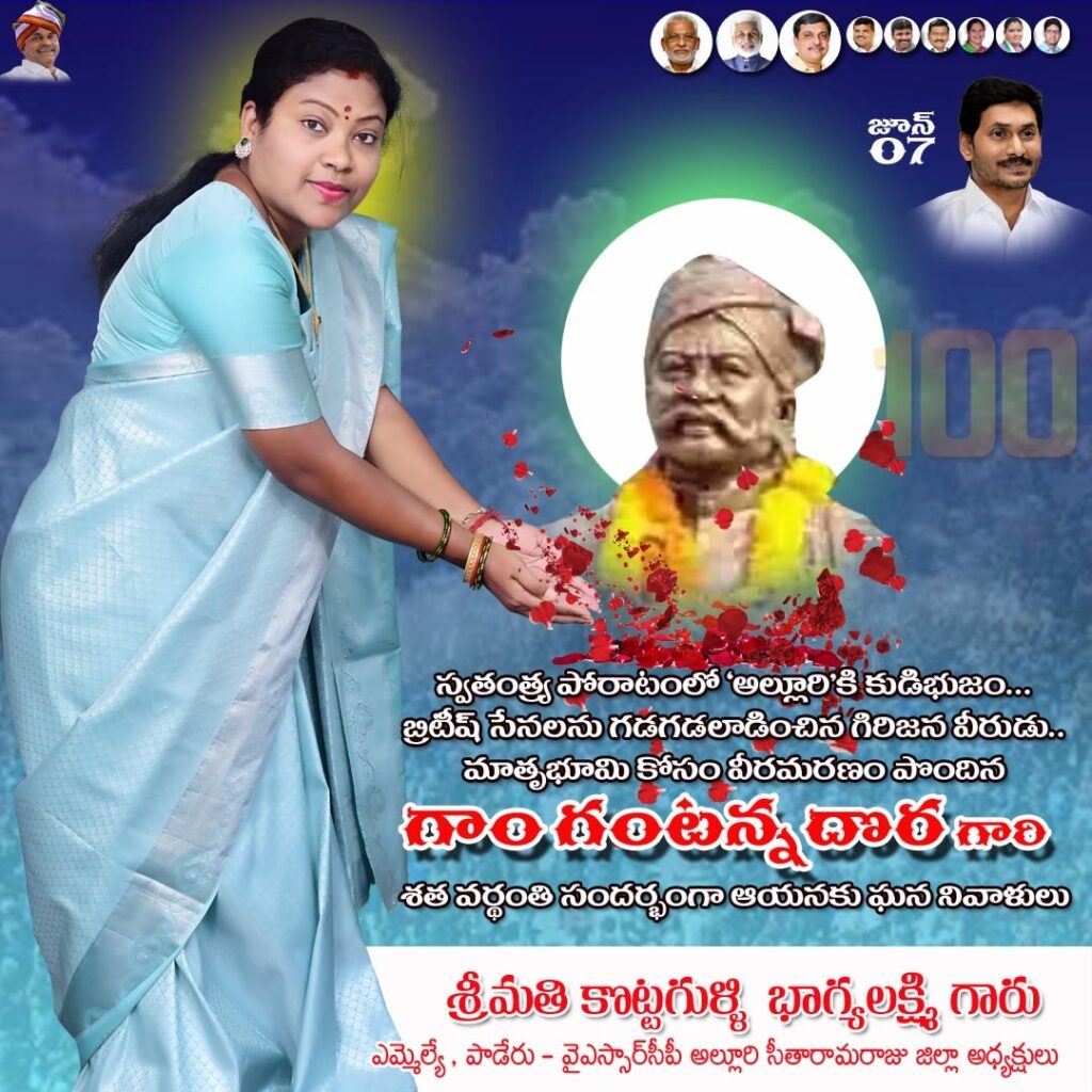 ఆంగ్లేయులపై పోరాటంలో అసువులు బాసిన మన్యం వీరుడు గాం గంటన్న దొరకు నివాళి అర్పించిన పాడేరు ఎమ్మెల్యే కే భాగ్యలక్ష్మి