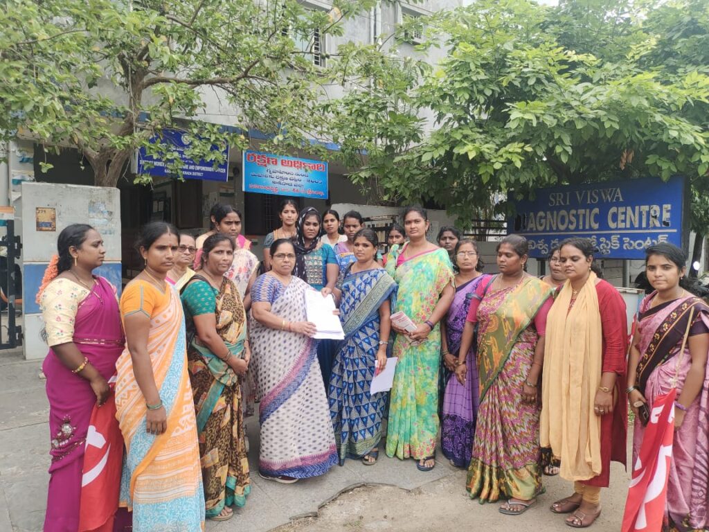 ఉమ్మడి తూర్పుగోదావరి జిల్లా లోని అంగన్వాడీ వర్కర్స్ హెల్పేర్స్ కి వేతనాలు కాకినాడ జిల్లా నుండి వేస్తున్నారు. వేతనాలు ప్రతినెలా సక్రమంగా రాక అనేక ఇబ్బందులు కి గురి అవుతున్న అంగన్వాడీ లకు నెలల తరబడి పెండింగ్ ఉంటూ జీతాలు పడక అనేక ఇబ్బందులు ఎదుర్కొంటున్నారు .అమలాపురం,గన్నవరం,రాజోలు,రాయవరం ,రంగంపేట,జగ్గంపేట,పెద్దాపురం సామర్లకోట అర్బున్ ,కపీలేశ్వరపురం,కాకినాడ, తదితర ప్రాజెక్ట్ ల నుండి జీతాలు పడని వారు వచ్చి ఆందోళన చేశారు. అలాగే రిటైర్మెంట్ అవ్వి ఒక హెల్పేర్ 3సంవత్సరాలు ఐనది రిటైర్మెంట్ బెనిఫిట్ కోసం ఎదురు చూసి చూసి చనిపోయినది. కాకినాడ ప్రాజెక్ట్ లో. ఈమె కాకుండా గత 2 సంవత్సరం ములుగా రిటైర్మెంట్ అయ్యి ఎమౌంట్ పడని వారు ఉన్నారు వారికి వేయాలని ,హెల్పేర్స్ ప్రమోషన్ లో రాజకీయ జోక్యం ఆపి ప్రమోషన్ లు ఇవ్వాలని. తదితర డిమాండ్స్ పై ధర్నా నిర్వహించి రెప్రెసెంటిషన్ సుపెరినెంట్ ప్రభ కి లక్ష్మీ సీడీపీఓ కి ఇవ్వడమైనది…పి.డి లీవ్ లో ఉన్నారు. .. ఈ ధర్నా కార్యక్రమంలో అంగన్వాడీ జిల్లా ప్రధాన కార్యదర్శి ఈ చంద్రావతి కాకినాడ ప్రాజెక్ట్ కార్యదర్శి ఎం.జ్యోతి. కోనసీమ జిల్లా రాయవరం ప్రాజెక్ట్ కార్యదర్శి డి.ఆదిలక్ష్మి. రాజోలు కార్యదర్శి కె.సుజాత. అంగన్వాడీ లు. ఉన్నారు…..
