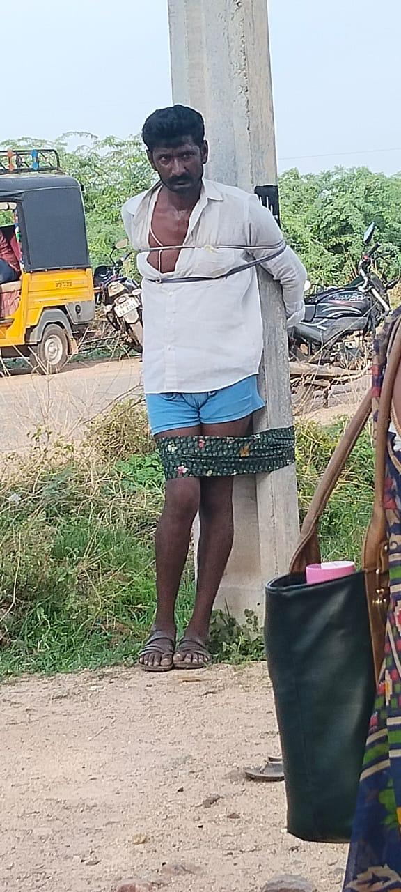 వెల్దుర్తి జూన్ 23 అఖండ భూమి వెబ్ న్యూస్ : క్రిష్ణగిరి మండలంలోని తొగడుచేడు గ్రామానికి చెందిన వైయస్సార్సీపి లీడర్ అయ్యన్న అనే వ్యక్తి క్రిష్ణగిరి మండలం అమ్మకు తాడు గ్రామంలో ఓ మహిళ పట్ల అసభ్యకరంగా ప్రవర్తించి మహిళను అవమానపరిచే విధంగా ప్రవర్తించినందుకు గ్రామ ప్రజలు కలిసి వైఎస్ఆర్సిపి లీడర్ అయ్యన్నను అమకతాడు గ్రామంలో ఒక ఫోన్ కి మహిళ భర్త గ్రామ ప్రజలు కలిసి కరెంటు స్తంభానికి కట్టేసి దేహశుద్ధి చేసినట్లు సమాచారం.