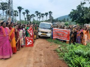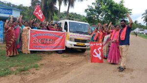 అంగన్వాడీ జీపు జాతను ప్రారంభించిన సిఐటియు జిల్లా నాయకులు పి రామరాజు.