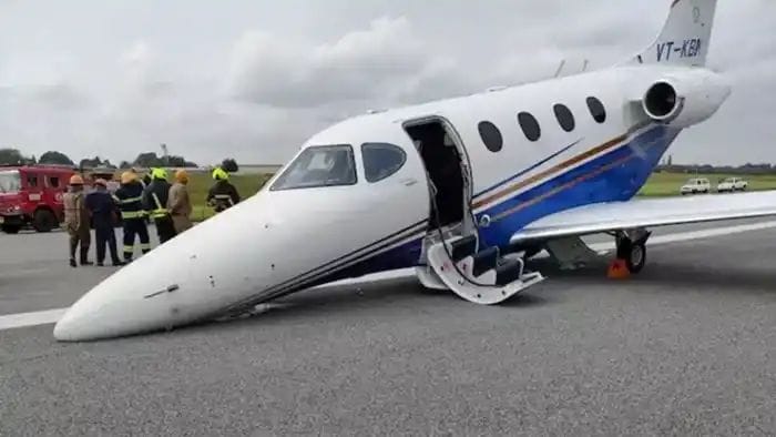 రన్ వేపై నీరు నిలవడంతో.. ఆ నీటిలో అలాగే ముందుకు వెళ్లింది. అప్పటికే విమానం నోస్ గేర్ సరిగా లేకపోవడంతో విమానం ఒక్కసారిగా ముందుకు దొర్లింది. అయితే అదృష్టవశాత్తూ విమానం సురక్షితంగా ల్యాండ్ అయినట్లు డీజీసీఏ వెల్లడించింది. ఆ సమయంలో విమానంలో ఇద్దరు పైలెట్లు మాత్రమే ఉన్నట్లు తెలిపింది. హాల్ ఎయిర్ పోర్టులో విమానం ల్యాండ్ అవుతున్న వీడియోలు ప్రస్తుతం నెట్టింట వైరల్ అవుతున్నాయి. అదృష్టవశాత్తూ విమానం సురక్షితంగా ల్యాండ్ అవడంతో ఎవరికీ ఎలాంటి హానీ జరగలేదు..