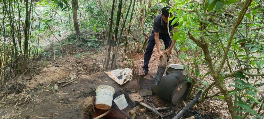 అల్లూరి జిల్లా రంపచోడవరం నియోజకవర్గం రాజవొమ్మంగి అఖండ భూమి జులై 19 రాజవొమ్మంగి మండలంలోని మారేడు బాకా పంచాయితీ మంగంపాడు గ్రామ చివర అటవీ ప్రాంతంలో సారాబట్టిని ధ్వంసం చేసి మారేడు బాక గ్రామానికి చెందిన వ్యక్తిని అరెస్టు చేసినట్లు జడ్జింగి ఎస్ఐ షరీఫ్ తెలిపినారు. ఈ దాడిలో 50 లీటర్ల బెల్లం ఊటను ధ్వంసం చేసి 30 లీటర్లు నాటు సారాయిను సీజ్ చేసినట్లు ఎస్సై షరీఫ్ తెలిపినారు ఈ మేరకు కేసు నమోదు చేసి దర్యాప్తు చేస్తున్నామన్నారు నిందితుల్ని రిమాండ్ నిమిత్తం మంగళవారం అడ్డతీగల కోర్టుకు తరలించినట్టు ఎస్సై తెలిపినారు