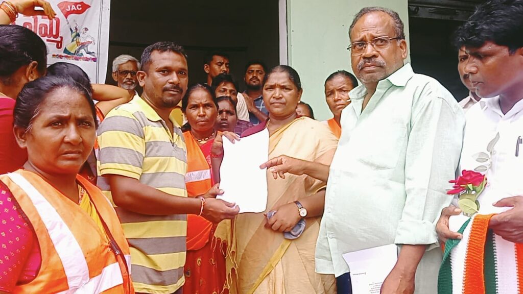ఎమ్మెల్యే సీతక్కకు వినతి పత్రం సమర్పించిన గ్రామ పంచాయతీ సిబ్బంది.