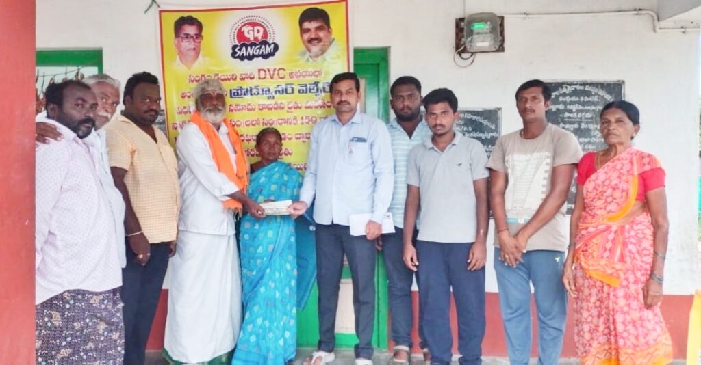అల్లూరు సంగం డెయిరీ వెండర్ నకు పాలు పోస్తున్న బడుగు రామారావు ఇటీవల మరణించగా ఆయన భార్య బడుగు దానమ్మకి 50 వేల రూపాయలు చెక్కు పదివేల రూపాయలు డబ్బుల ను శ్రీ డివిసి అభయ పథకం ద్వారా సంగం డైరీ సహాయ సహకారంతో