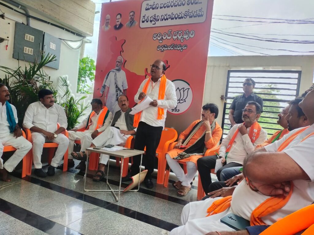 నిజామాబాద్ జిల్లా ఆర్మూర్ నియోజకవర్గం ప్రతినిధి (అఖండ భూమి) ఆగస్టు20: ఆర్మూర్ మున్సిపల్ పరిధిలోని ఎంపీ ధర్మపురి అరవింద్ నివాసంలో ఆదివారం బిజెపి నియోజకవర్గ కార్యకర్తల సమావేశాన్ని నిర్వహించారు. ఈ కార్యక్రమానికి ముఖ్యఅతిథిగా మహారాష్ట్ర ఎమ్మెల్యే సంజీవరెడ్డి బాపురావు ముఖ్య అతిథిగా పాల్గొని మాట్లాడుతూ ఎమ్మెల్యే రౌడీ రాజకీయాలు. ఆయన సంపాదన చూసి ఆశ్చర్యపోయానని. తెలంగాణ రాష్ట్రంలో నే అత్యంత దోపిడీకి గురైన నియోజకవర్గ ఏదైనా ఉందంటే అది ఆర్మూర్ నియోజకవర్గమే అని ఆయన అన్నారు. ఎమ్మెల్యే బీజేపీ కార్యకర్తలను బెదిరించడం. అక్రమ కేసులు పెట్టడం. రకరకాలుగా వేధింపులకు గురి చేస్తున్నాడని ఆరోపించారు. ప్రవాస్ యోజన కార్యక్రమంలో భాగంగా ఆర్మూర్ నియోజకవర్గంలో 8 రోజులపాటు ఉండి ప్రతి మండలానికి తిరిగి బిజెపి కార్యకర్తలను ఉత్సాహపరిచి. ప్రధానమంత్రి నరేంద్ర మోడీ సంక్షేమ పథకాలను ప్రజల్లోకి తీసుకువెళ్లి నరేంద్ర మోడీ గెలుపునకు కృషి చేస్తామని ఆయన అన్నారు. రానున్న అసెంబ్లీ ఎన్నికల్లో బూతు కమిటీ అధ్యక్షులు కార్యకర్తలు కష్టపడి పని చేస్తే గెలుపు ఖాయం అవుతుందని అన్నారు. ఎంపీ ధర్మపురి అరవింద్ మాట్లాడుతూ రానున్న ఎన్నికల్లో పకడ్బందీగా పక్క ప్రణాళికలతో ముందుకు సాగాలని బిజెపి పార్టీని గెలిపించేందుకు ప్రతి కార్యకర్త. బూత్ కమిటీలు. నాయకులు కలిసి పని చేస్తే గెలుపు సునయాసమవుతుందని అన్నారు. ఈ సమావేశంలో రాష్ట్ర అధికార ప్రతినిధి అల్జాపూర్ శ్రీనివాస్. పెద్దోళ్ల గంగారెడ్డి. జీవి నరసింహారెడ్డి. పైడి రాకేష్ రెడ్డి. విజయభారతి. యామాద్రి భాస్కర్. నూతుల శ్రీనివాస్ రెడ్డి. జెస్సు అనిల్. వివిధ మండలాల అధ్యక్ష. కార్యదర్శులు. కార్యకర్తలు పాల్గొన్నారు.