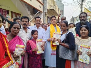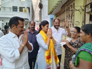తెలుగుదేశం పార్టీ సూపర్ సిక్స్ పథకాలు అధికార వైఎస్ఆర్ కాంగ్రెస్ పార్టీలో గుబులు పుట్టిస్తున్నాయని తుని నియోజకవర్గ తెలుగుదేశం పార్టీ ఇంచార్జ్ యనమల దివ్య అన్నారు. ‘మీ ఇంటికి మీ దివ్య’ కార్యక్రమంలో భాగంగా ఇవాళ తుని పట్టణంలోని 19 వ వార్డు మొండి వీధిలో రాష్ట్ర తెలుగుదేశం పార్టీ ఆర్గనైజింగ్ కార్యదర్శి యనమల కృష్ణుడుతో కలిసి పర్యటించారు. తెలుగుదేశం పార్టీ,జనసేన కార్యకర్తలతో కలిసి పర్యటించిన యనమల దివ్యకు మహిళలు మంగళహారతులతో బ్రహ్మరథం పట్టారు. అనంతరం ఆమె భవిష్యత్తుకు గ్యారెంటీ కార్యక్రమాన్ని నిర్వహించారు. ఇంటింటికి వెళ్లి కరపత్రాలను పంచి మినీ మానిఫెస్టో ను గూర్చి వివరించారు. ఈ సందర్భంగా దివ్య మాట్లాడుతూ తెలుగుదేశం జనసేన పార్టీ కూటమితో వైకాపాలో వణుకు పుడుతుంది అన్నారు. చంద్రబాబు పవన్ కళ్యాణ్ జనరంజక పథకాల కోసం ప్రజలు జనసేన తెలుగుదేశం పార్టీలను గెలిపించాలని కోరారు. రాష్ట్ర తెలుగుదేశం పార్టీ ఆర్గనైజింగ్ కార్యదర్శి యనమల కృష్ణుడు మాట్లాడుతూ రాష్ట్ర యావత్తు మార్పు కోరుతున్నారని.. వైసీపీ ని సాగనంపి తెలుగుదేశం జనసేన పార్టీలకు పట్టం కట్టేందుకు ఎదురుచూస్తున్నారని ఆయన అన్నారు.