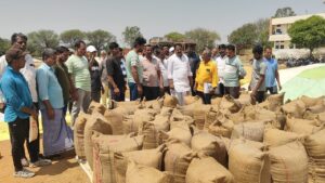 కల్లములో తడిసిన సంచులను రైస్ మిల్లర్లు దించుకోవాలనీ విజ్ఞప్తి చేశారు. అధికారులు సాధ్యమైనంత త్వరగా కాంట పూర్తి చేయాలనీ అన్నారు. తూకం వేసిన వడ్లు సాధ్యమైనంత తొందర రైస్ మిల్లులకు తరలించాలనీ అన్నారు.*రాళ్ళ వానకి నష్టపోయిన పంటకి నష్ట పరిహారం చెల్లించాలి*