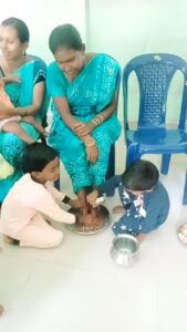 ఐ. పోలవరం మండలం ఐ.పోలవరం ఎస్సీ పేట గ్రామం అంగన్వాడి కేంద్రం నందు తల్లికి వందనం అంటూ చిన్నారులు వారి వారి తల్లులకు పాద పూజ చేసి పూలతో అలంకరించారు. చిన్న వయసు నుండి పిల్లలకు ఇటువంటి కార్యక్రమాలు చేయించడం ద్వారా తల్లిదండ్రుల పట్ల ఆప్యాయత గౌరవ మర్యాదలు పెరుగుతాయని సమాజంలో పెద్దల పట్ల గౌరవం పెంపొందించుతుందని ఆదర్శ పౌరులుగా ఎదగడానికి ఈ వయసు పిల్లలో క్రమశిక్షణ అలవాటు చేయడానికి ఇటువంటి కార్యక్రమాలు తోడ్పడతాయని అంగన్వాడికార్యకర్త జి. అనంతలక్ష్మి పేర్కొన్నారు ఈ విధమైన కార్యక్రమం చేయడం ద్వారా మాకు ఎంతో ఆనందంగా ఉందని తల్లులు హర్షం వ్యక్తం చేశారు.