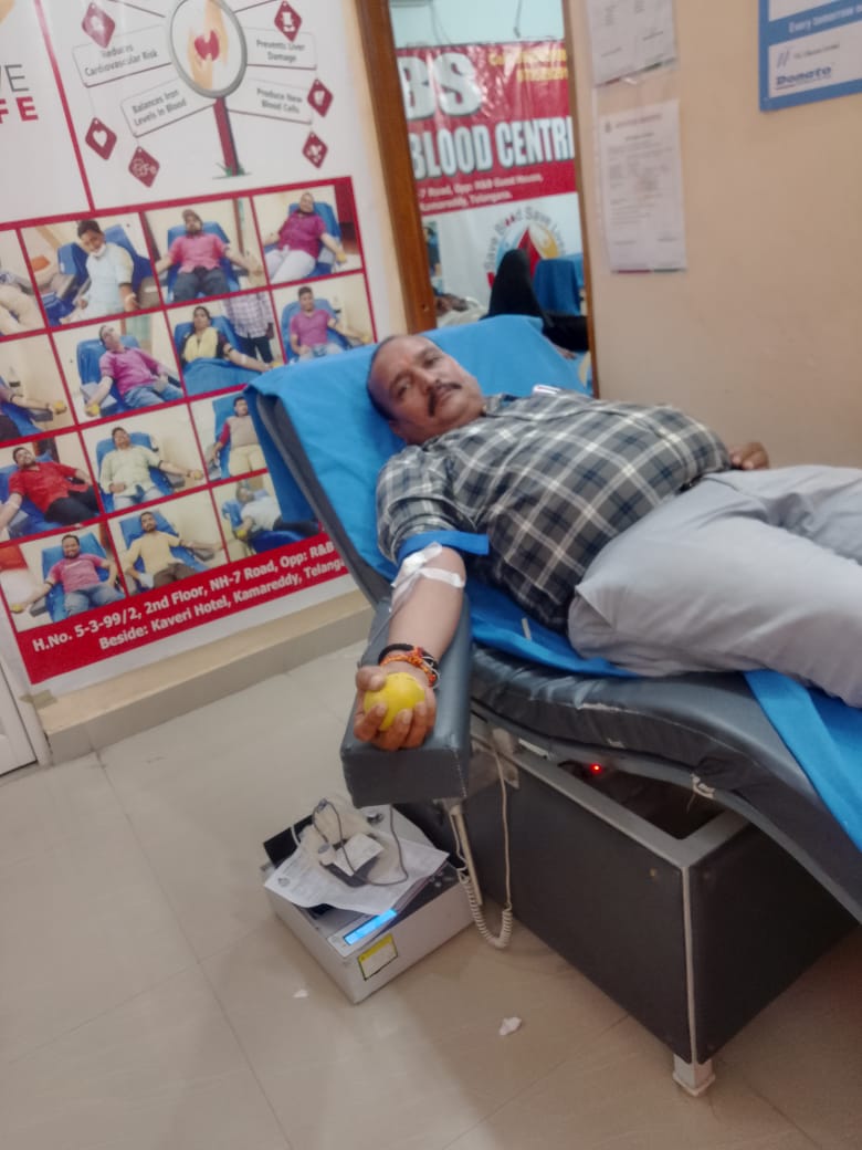 కామారెడ్డి జిల్లా సదాశివ నగర్ కు చెందిన ఒక గర్భిణీ మహిళ పోతుల మౌనికకు డెలివరీ నిమిత్తం ఏది నెగిటివ్ రక్తం అవసరమని తెలుసుకొని దోమకొండ మండల కేంద్రానికి చెందిన ప్రభుత్వ ఉపాధ్యాయుడు శెట్టిపల్లి శ్రీనివాసులు శర్మ నేడు కామారెడ్డి జిల్లా కేంద్రంలో ఆర్ బీసీ రక్త నిధి లో రక్తదానం చేశారు. ఉపాధ్యాయుడు ఇప్పటివరకు 34 సార్లు రక్తదానం చేశారు పలువురు అతన్ని అభినందిస్తున్నారు.